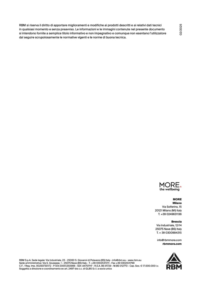 RBM si riserva il diritto di apportare miglioramenti e modifiche ai prodotti descritti e ai relativi dati tecnici