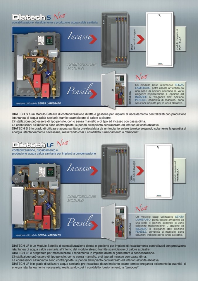 DIATECH LF è un Modulo Satellite di contabilizzazione diretta e gestione per impianti di riscaldamento centralizzati con produzione