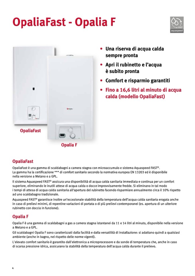 OpaliaFast è una gamma di scaldabagni a camera stagna con microaccumulo e sistema Aquaspeed FAST