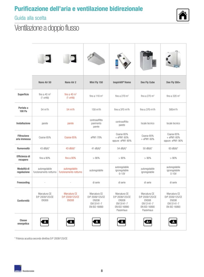 * Potenza acustica secondo direttiva ErP 2009/125/CE