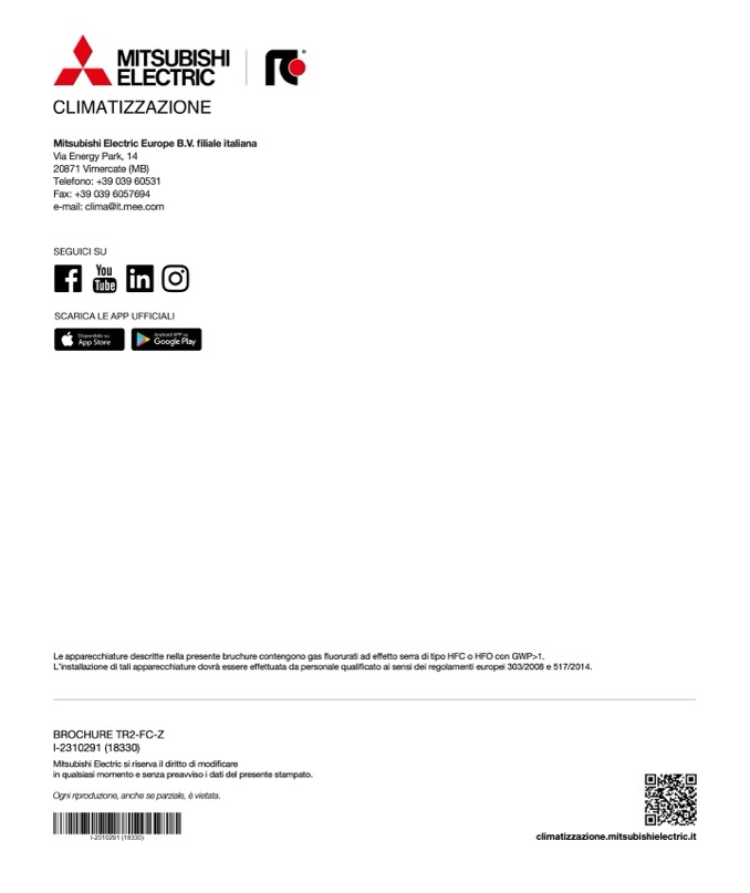 Le apparecchiature descritte nella presente bruchure contengono gas fluorurati ad effetto serra di tipo HFC o HFO con GWP>1.