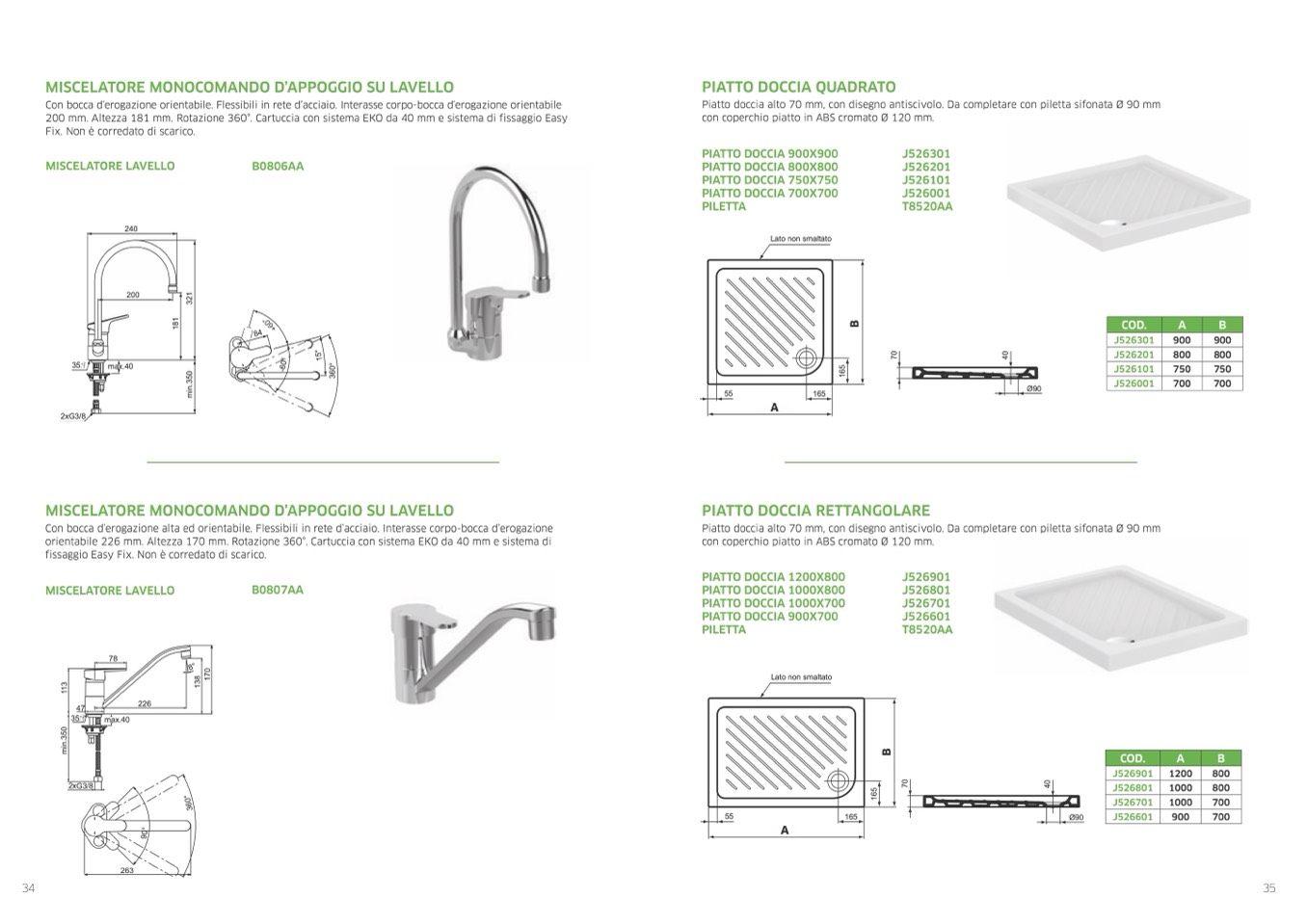 200 mm. Altezza 181 mm. Rotazione 360°. Cartuccia con sistema eKo da 40 mm e sistema di fissaggio easy