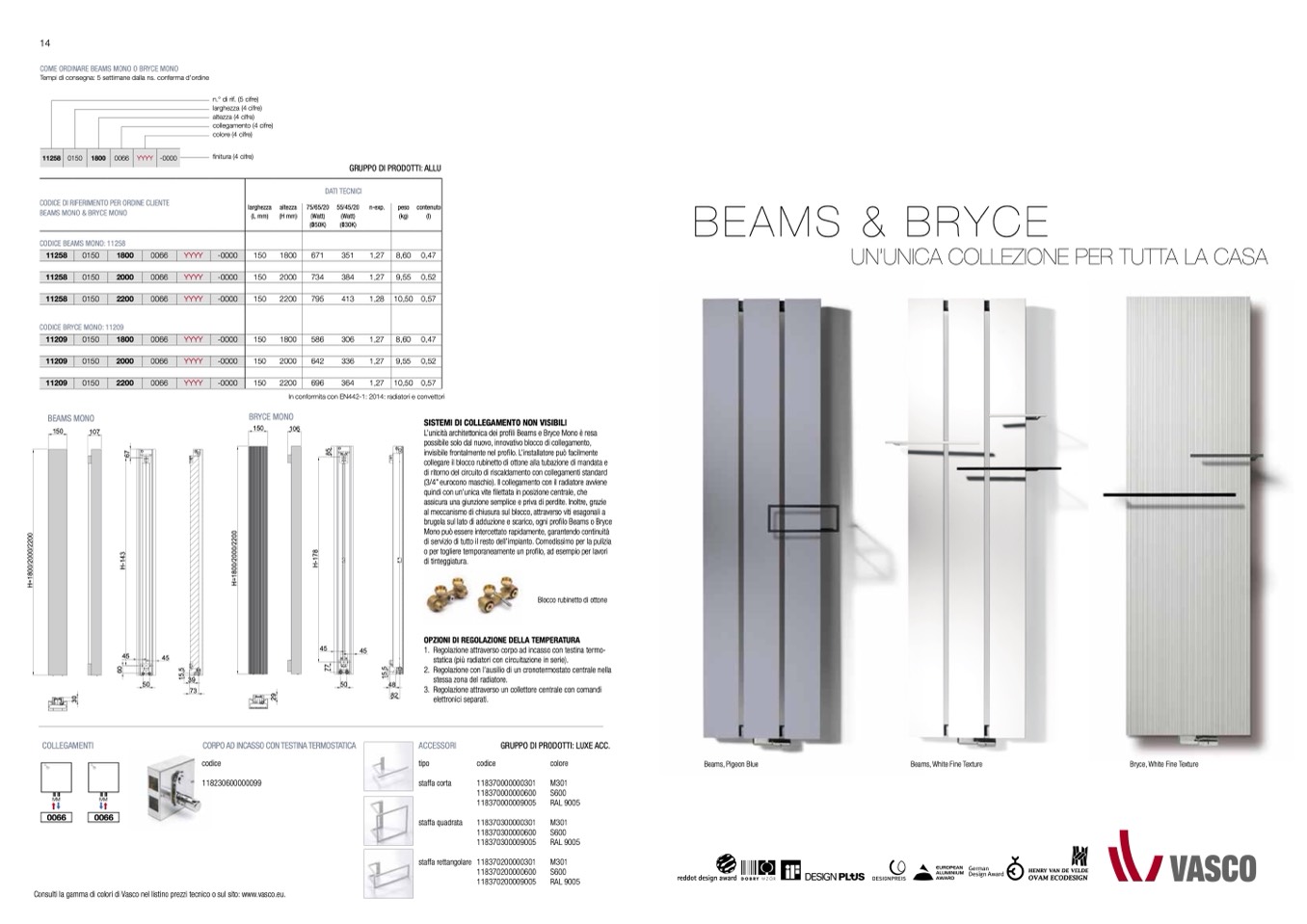 Consulti la gamma di colori di Vasco nel listino prezzi tecnico o sul sito: www.vasco.eu.