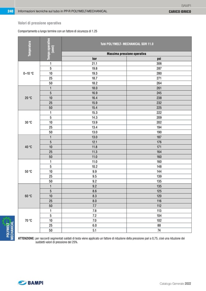 Informazioni tecniche sul tubo in PP-R POLYMELT-MECHANICAL