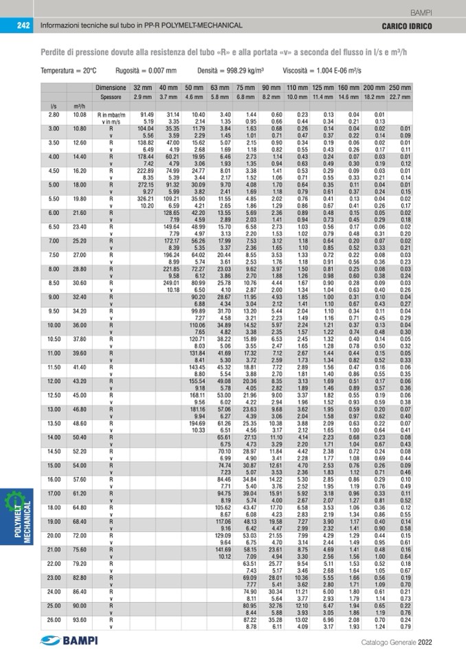 Informazioni tecniche sul tubo in PP-R POLYMELT-MECHANICAL