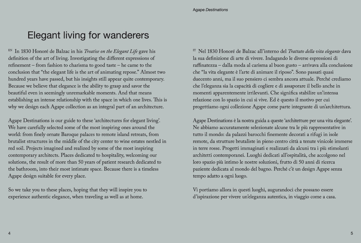 Agape Destinations è la nostra guida a queste ‘architetture per una vita elegante’.