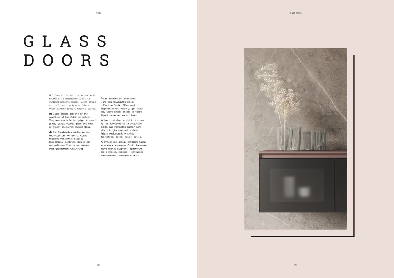 glass, grigio etched glass and matt