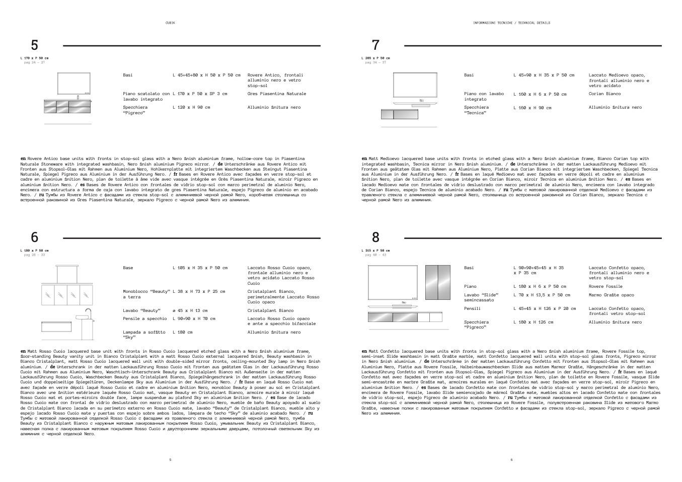 integrated washbasin, Tecnica mirror in Nero finish aluminium. / de Unterschränke in der matten Lackausführung Medioevo mit