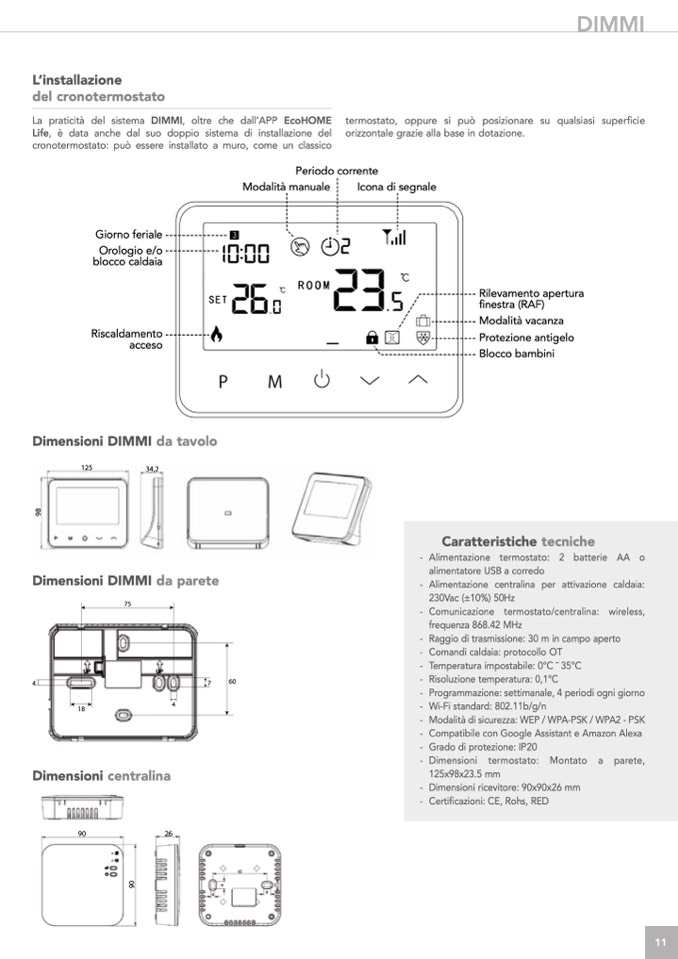 La praticità del sistema DIMMI, oltre che dall’APP EcoHOME termostato, oppure si può posizionare su qualsiasi superficie
