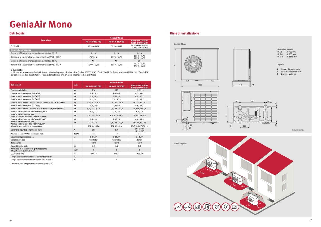 Unità esterna monoblocco GeniaAir Mono / Interfaccia pompa di calore HPIM (codice 0010031650) / Centralina MiPro Sense (codice 0020260974) / Sonda NTC