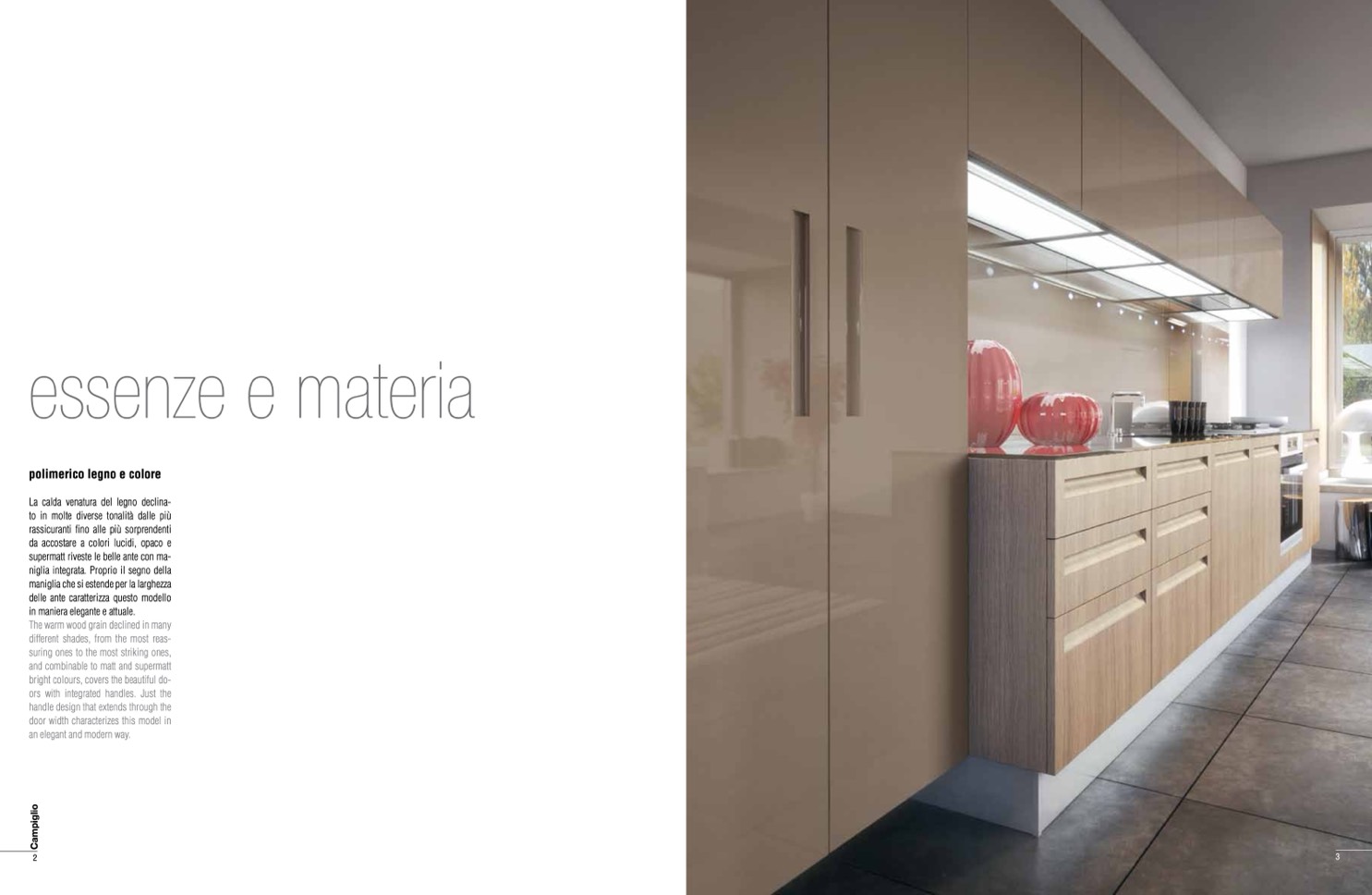La calda venatura del legno declina-
