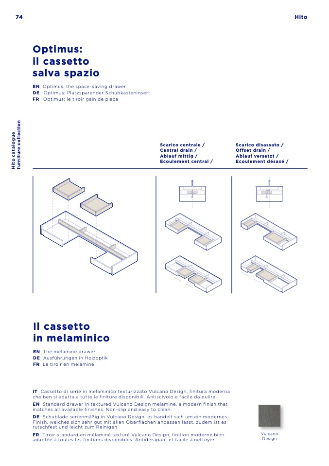 IT Cassetto di serie in melaminico texturizzato Vulcano Design, finitura moderna
