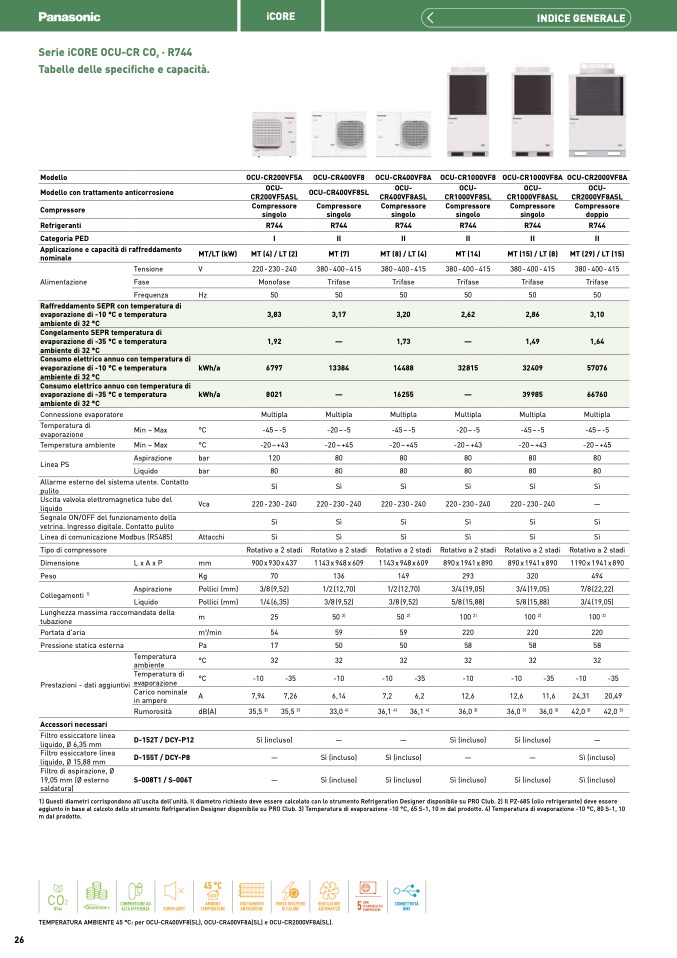 TEMPERATURA AMBIENTE 45 °C: per OCU-CR400VF8(SL), OCU-CR400VF8A(SL) e OCU-CR2000VF8A(SL)