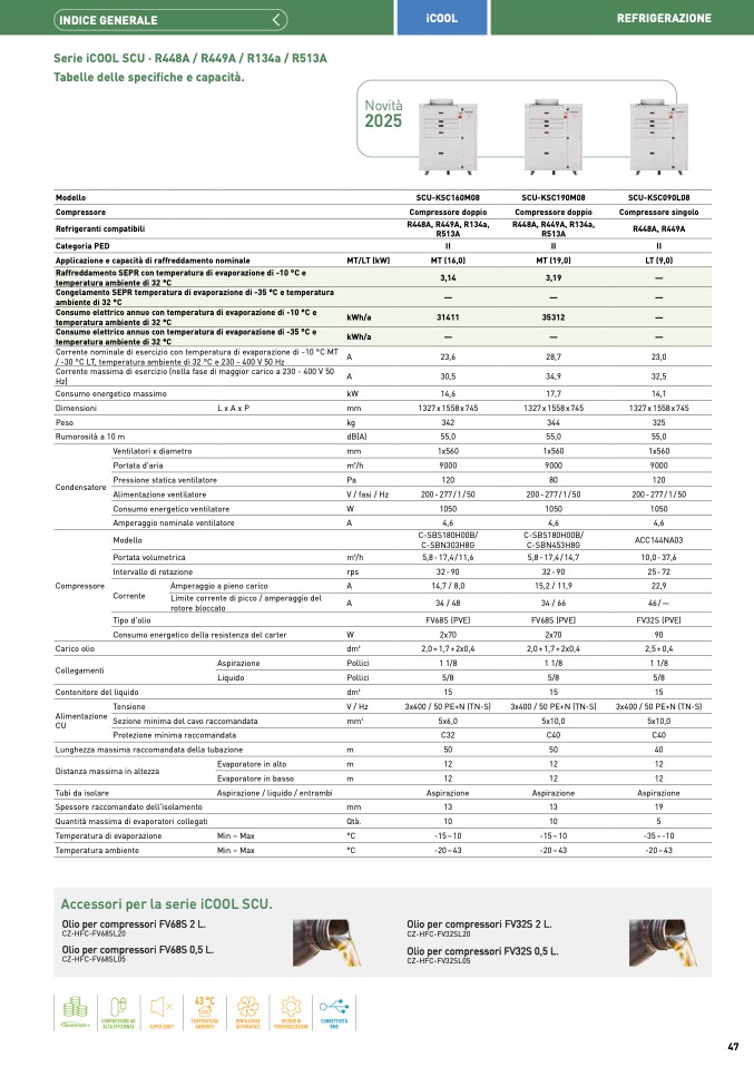 Applicazione e capacità di raffreddamento nominale