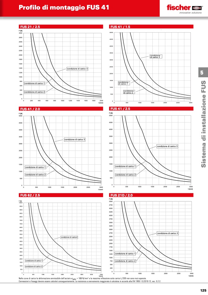 Nelle curve di carico la deformazione ammissibile dell‘acciaio σadm = 188 N/mm