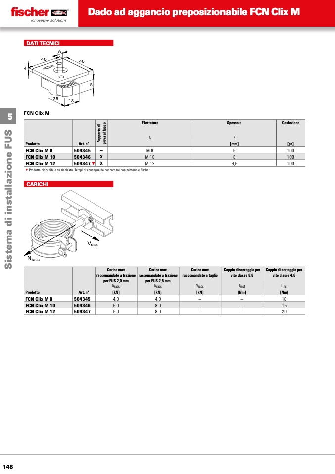 ▼ Prodotto disponibile su richiesta. Tempi di consegna da concordare con personale fischer.