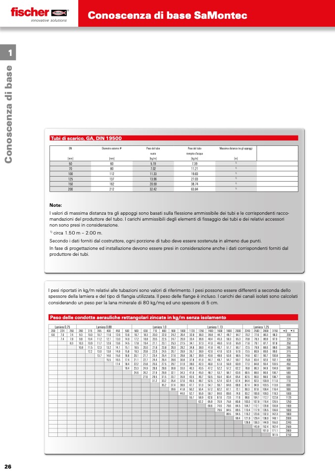 I pesi riportati in kg/m relativi alle tubazioni sono valori di riferimento. I pesi possono essere differenti a seconda dello
