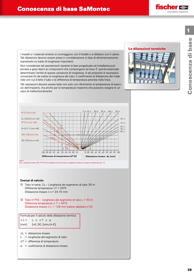 Per i materiali sintetici (PE, PP, PVC) le dilatazioni lineari lette sul diagramma devono essere moltiplicate per 10.