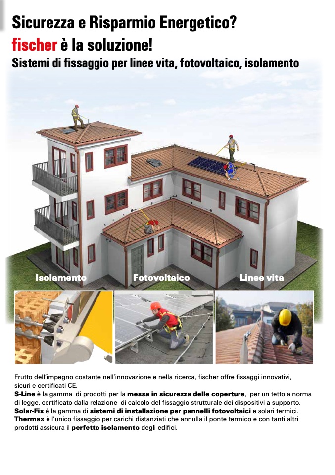 Sistemi di fissaggio per linee vita, fotovoltaico, isolamento