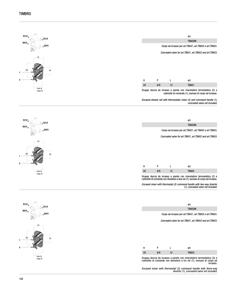 Concealed valve for art.TB601, art.TB602 and art.TB603.