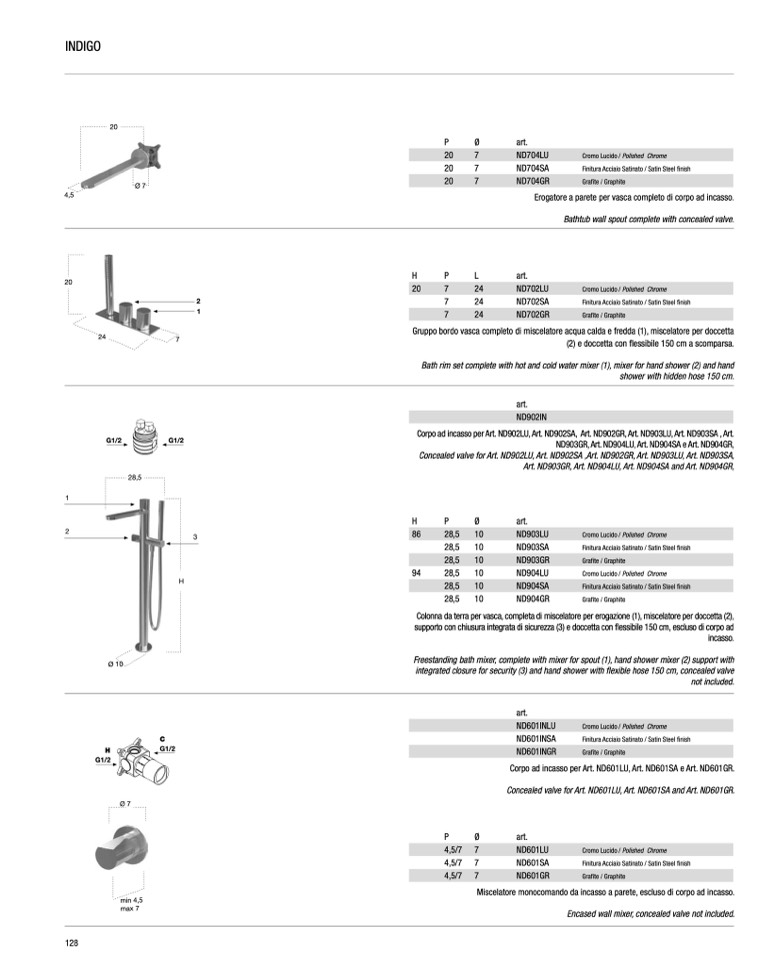 ND903GR, Art. ND904LU, Art. ND904SA e Art. ND904GR,