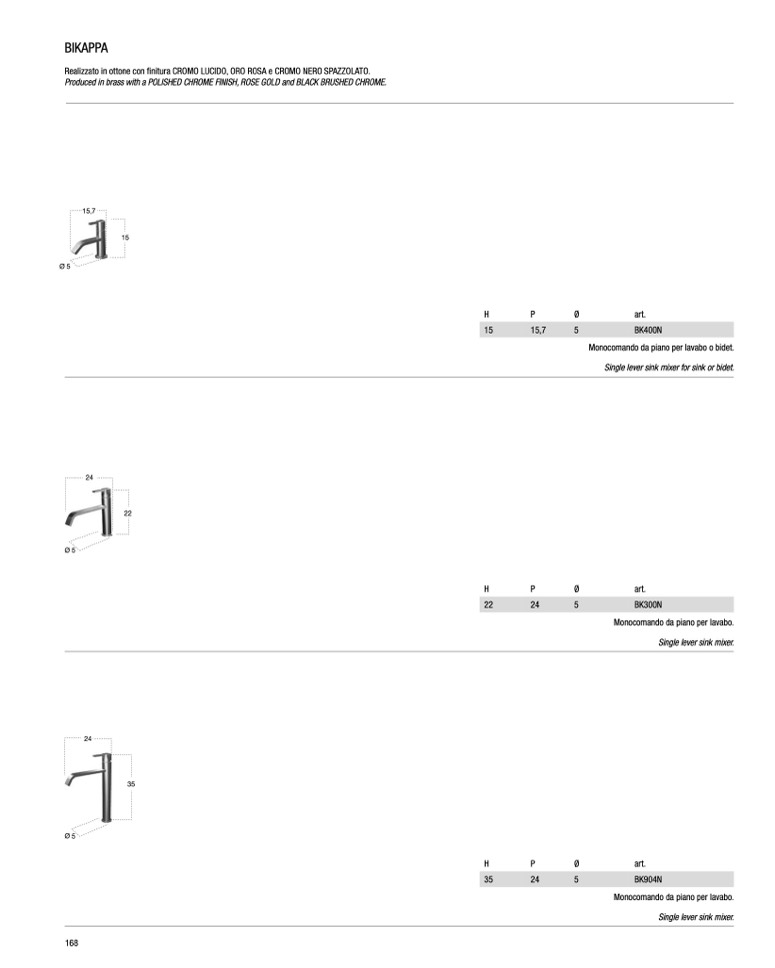 Realizzato in ottone con finitura CROMO LUCIDO, ORO ROSA e CROMO NERO SPAZZOLATO.