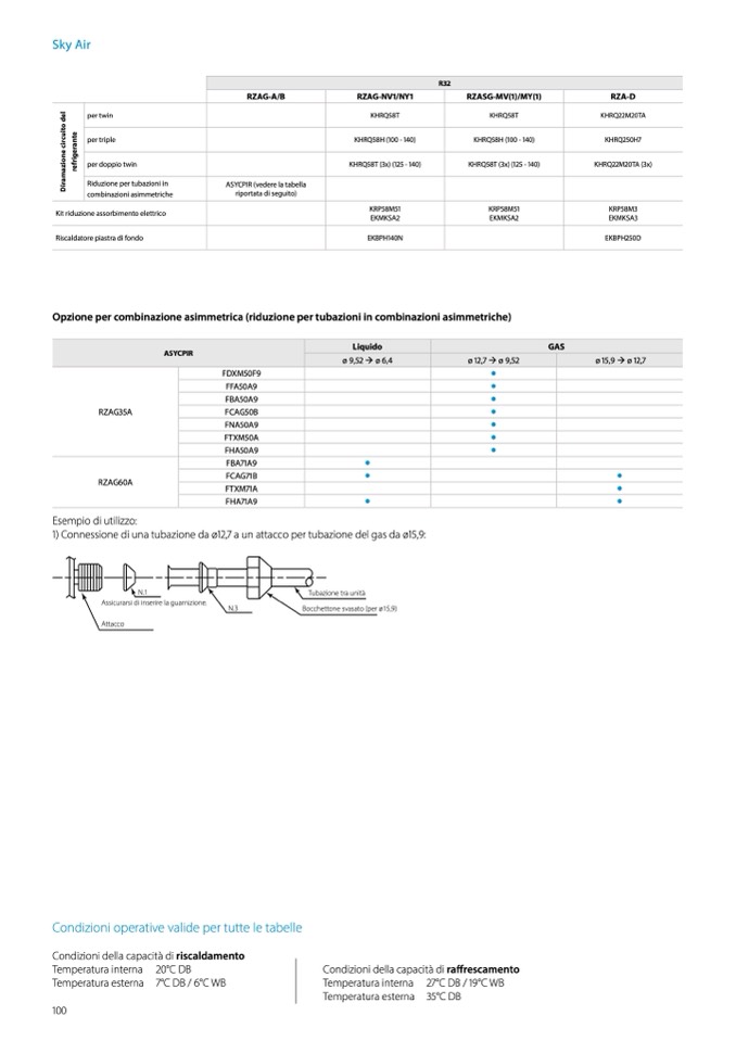 1) Connessione di una tubazione da ø12,7 a un attacco per tubazione del gas da ø15,9: