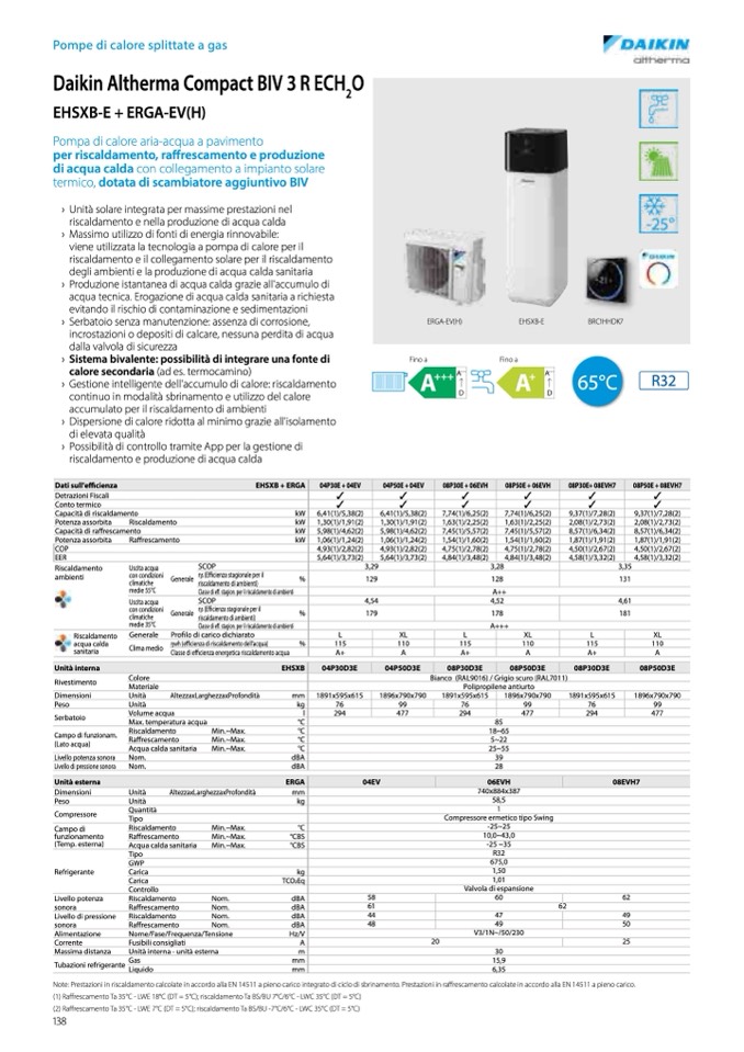 (2) Raffrescamento Ta 35°C - LWE 7°C (DT = 5°C); riscaldamento Ta BS/BU -7°C/6°C - LWC 35°C (DT = 5°C)