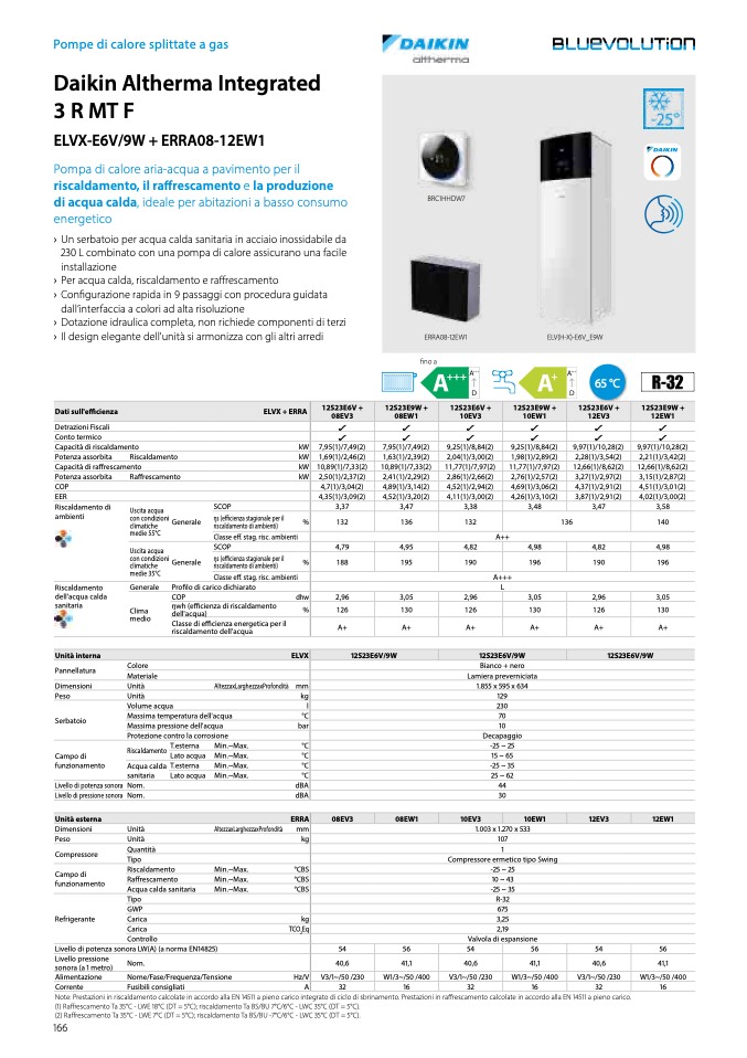Note: Prestazioni in riscaldamento calcolate in accordo alla EN 14511 a pieno carico integrato di ciclo di sbrinamento. Prestazioni in ra