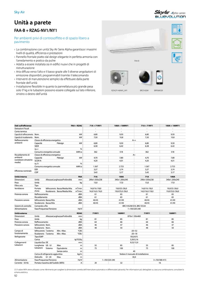 (1) Il valore MFA viene utilizzato come riferimento per scegliere la dimensione corretta dell'interruttore automatico e di