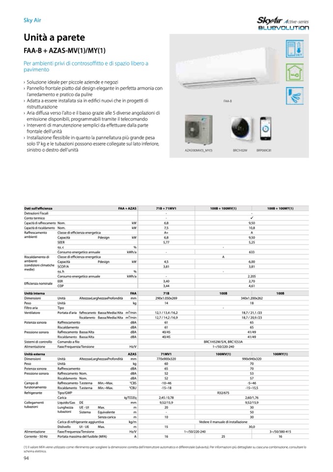 (1) Il valore MFA viene utilizzato come riferimento per scegliere la dimensione corretta dell'interruttore automatico e di