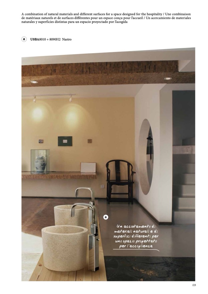 A combination of natural materials and different surfaces for a space designed for the hospitality / Une combinaison