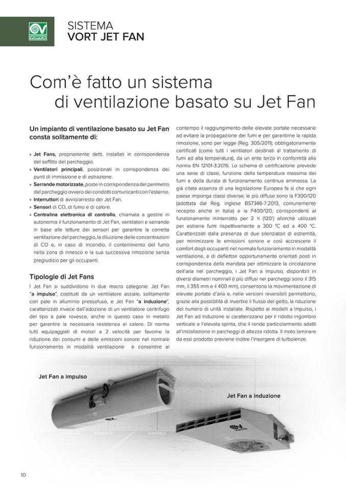 Jet Fans, propriamente detti, installati in corrispondenza