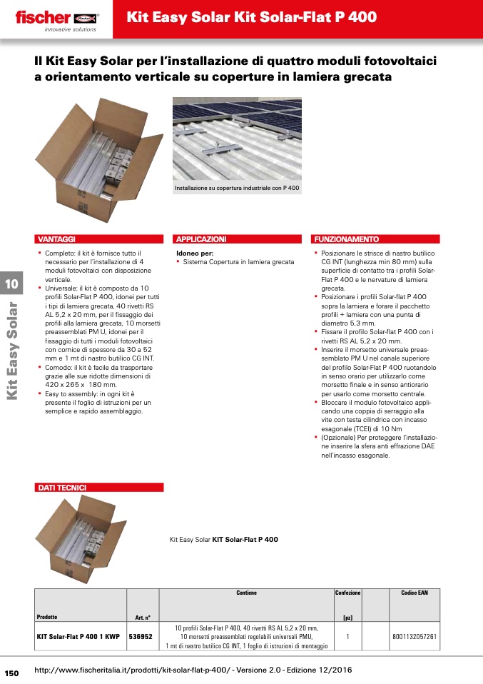 http://www.fischeritalia.it/prodotti/kit-solar-flat-p-400/ - Versione 2.0 - Edizione 12/2016