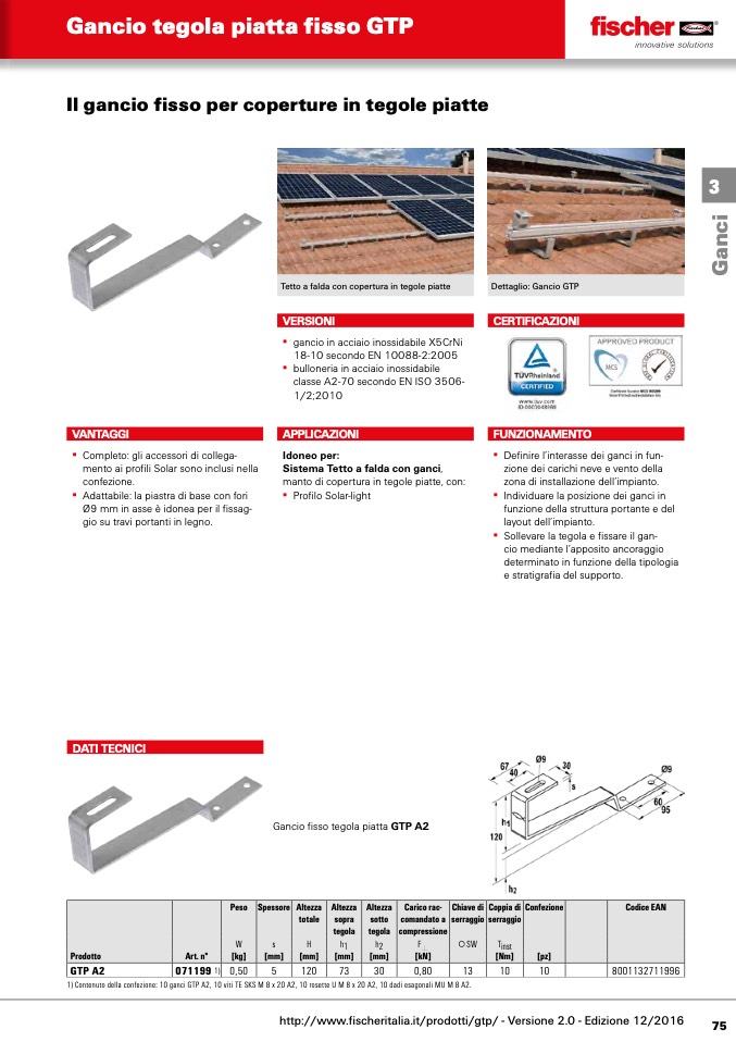 Gancio▪fisso▪tegola▪piatta▪GTP A2