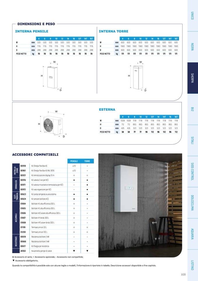 Quando la compatibilità è possibile solo con alcune taglie o modelli, l’informazione è riportata in tabella. Descrizione accessori disponibile a fine capitolo
