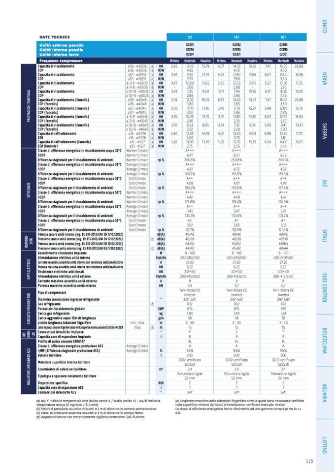 (a) aX/Y indica la temperatura aria (bulbo secco X / bulbo umido Y) - wA/B indica la