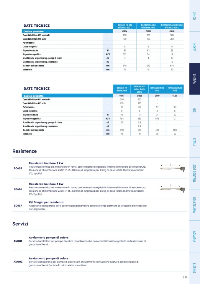 Resistenza elettrica ad immersione in rame, con termostato regolabile interno e limitatore di temperatura.