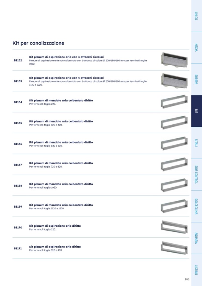 Plenum di aspirazione aria non coibentato con 1 attacco circolare Ø 200/180/160 mm per terminali taglia