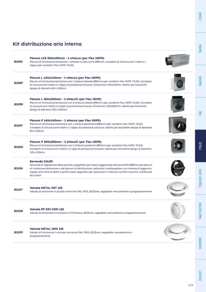 Plenum di immissione/estrazione con 1 attacco laterale Ø80mm (per condotto Flex HDPE 75/63). Completo