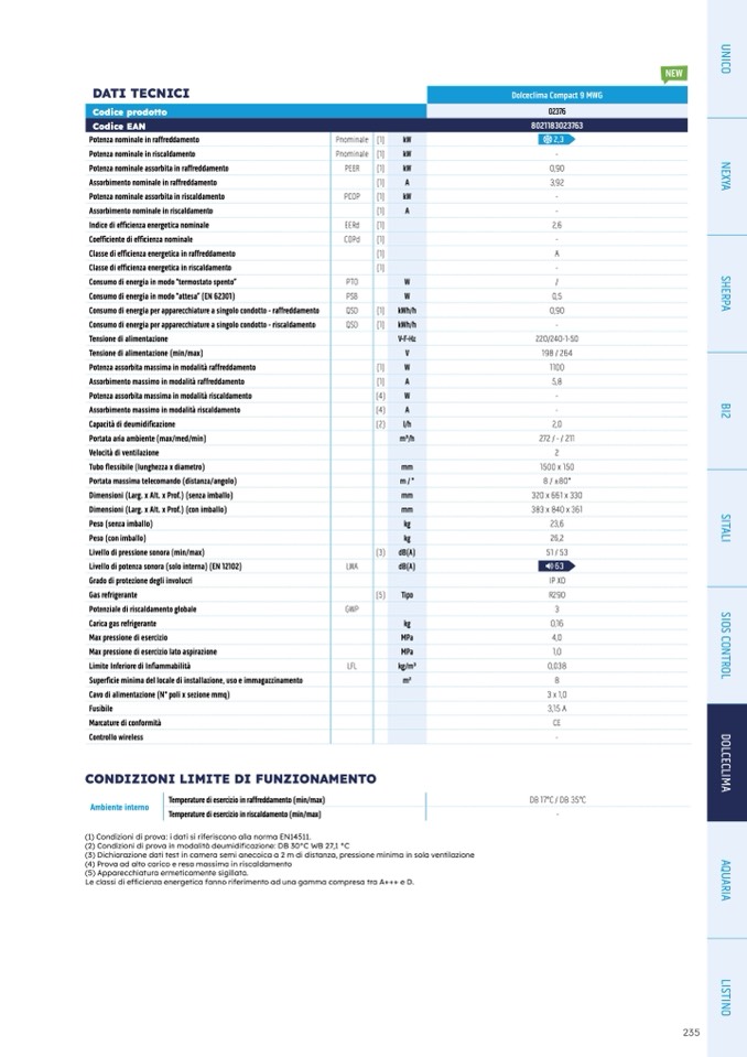 (1) Condizioni di prova: i dati si riferiscono alla norma EN14511.