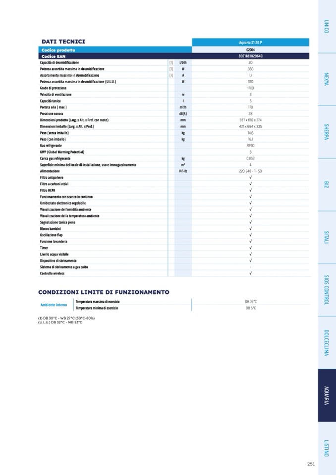Potenza assorbita massima in deumidificazione (U.L.U.)