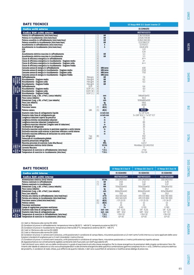 (3) Condizioni di prova in riscaldamento: temperatura interna DB 27°C; temperatura esterna DB 3°C - WB 2°