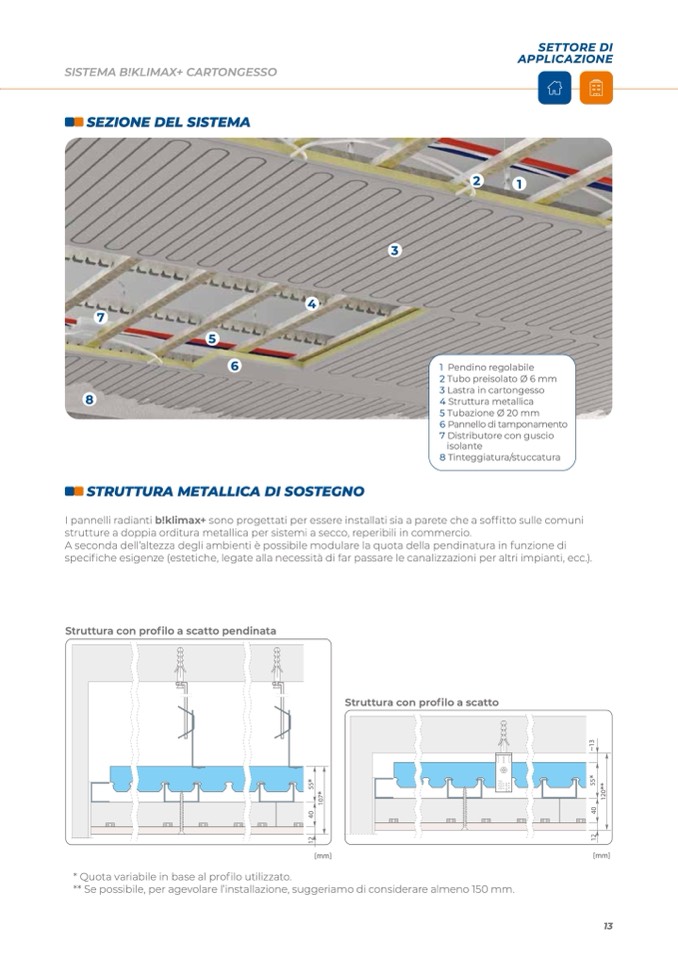 I pannelli radianti b!klimax+ sono progettati per essere installati sia a parete che a soffitto sulle comuni