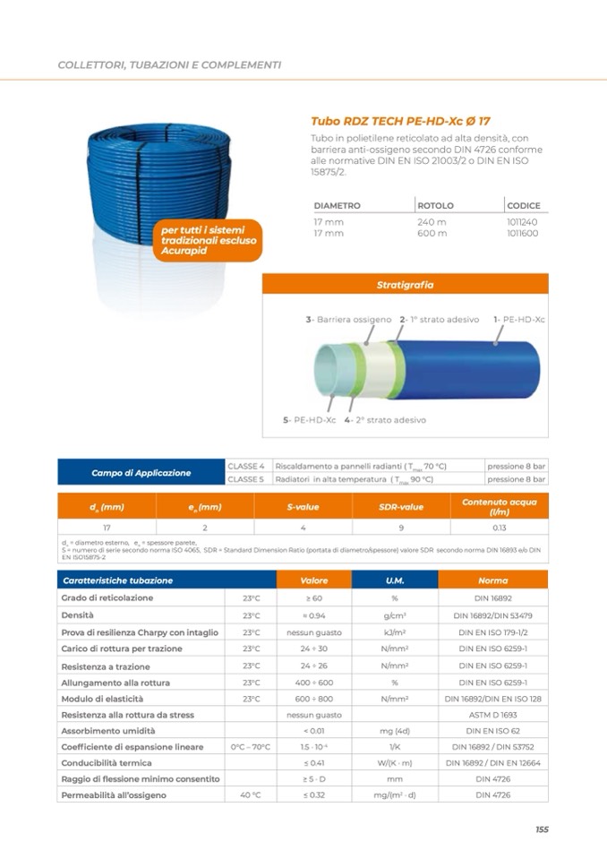 S = numero di serie secondo norma ISO 4065, SDR = Standard Dimension Ratio (portata di diametro/spessore) valore SDR secondo norma DIN 16893 e/o DIN