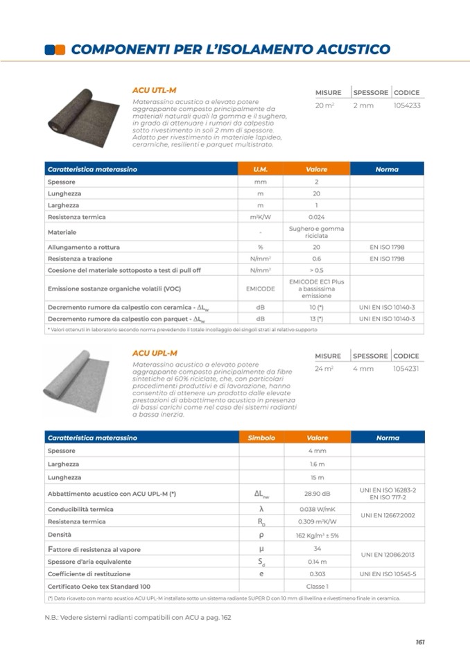 (*) Dato ricavato con manto acustico ACU UPL-M installato sotto un sistema radiante SUPER D con 10 mm di livellina e rivestimeno finale in ceramica.