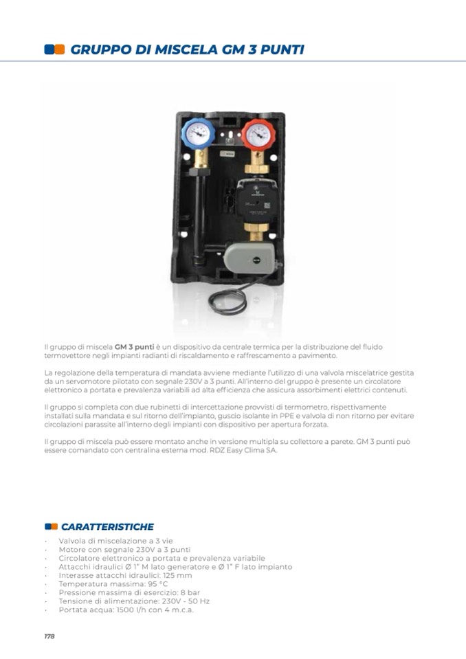 da un servomotore pilotato con segnale 230V a 3 punti. All’interno del gruppo è presente un circolatore