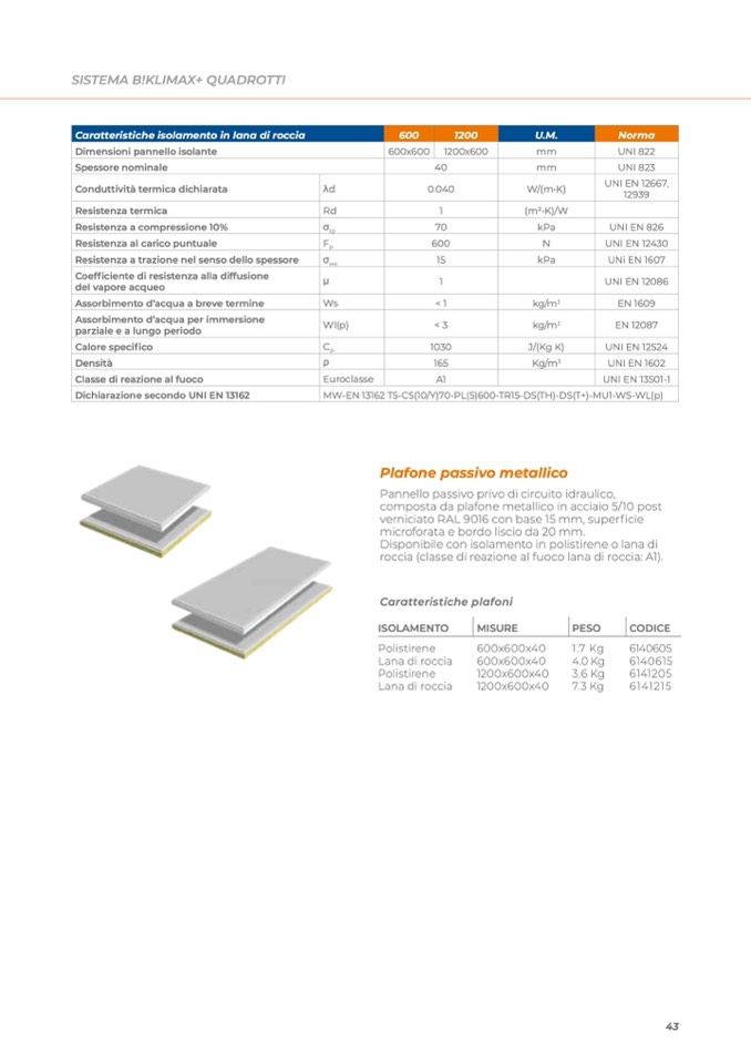 roccia (classe di reazione al fuoco lana di roccia: A1).