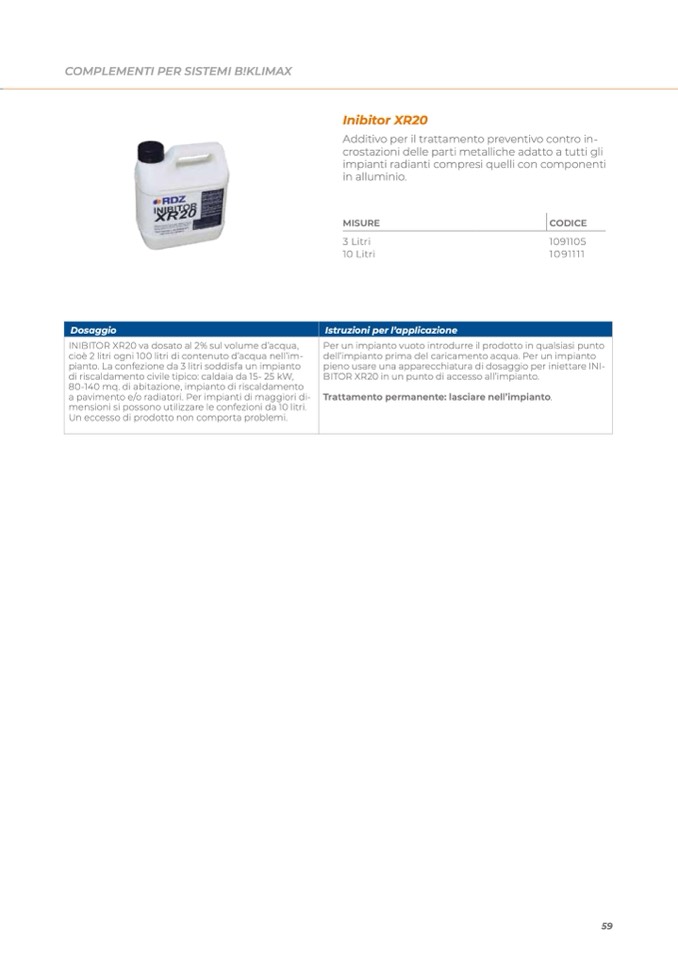 INIBITOR XR20 va dosato al 2% sul volume d’acqua,