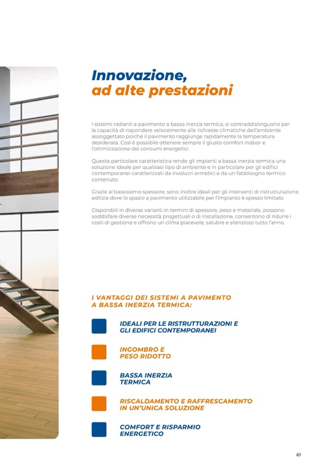 I sistemi radianti a pavimento a bassa inerzia termica, si contraddistinguono per
